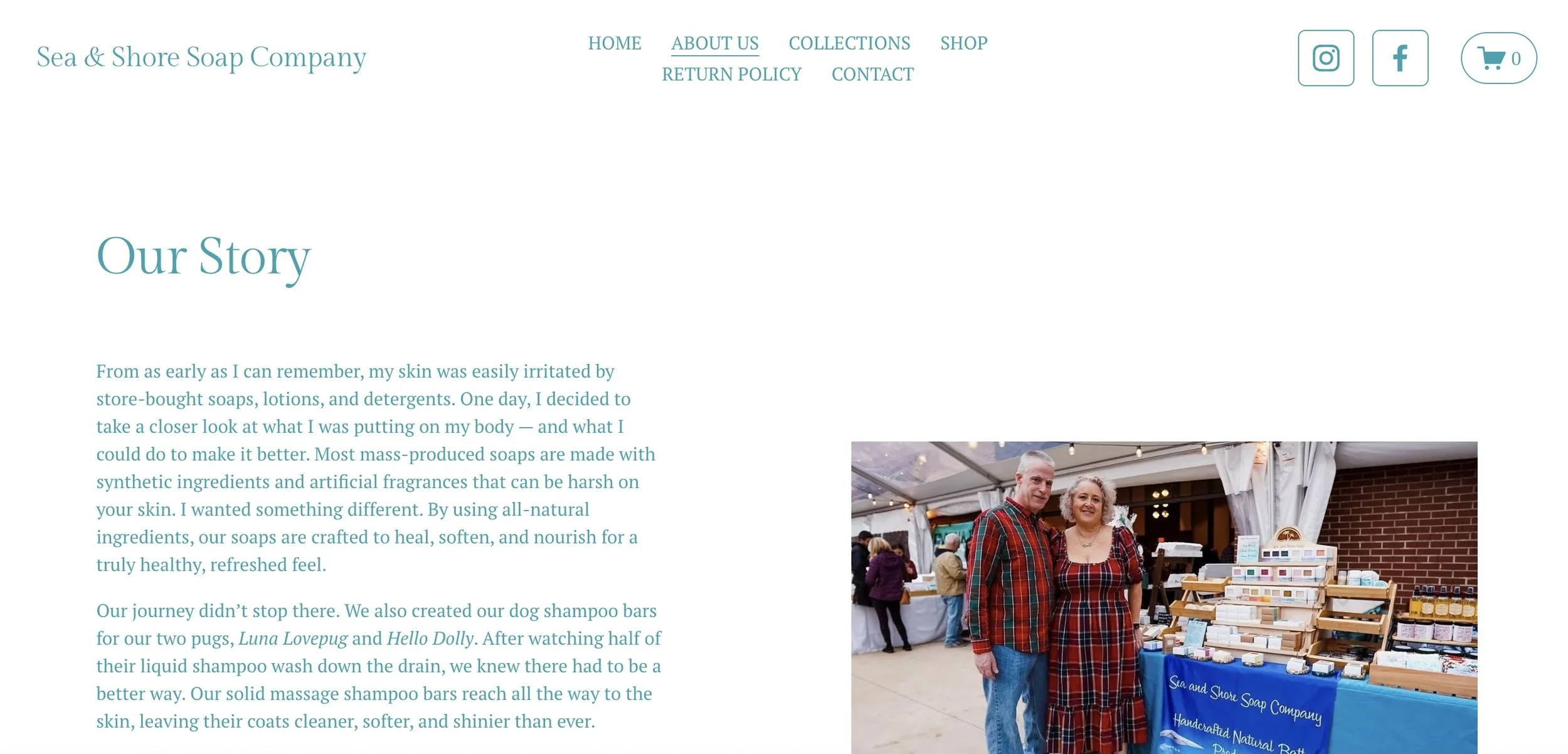 Sea and Shore Soap Co.’s website features a clean, coastal design with soft ocean tones and natural textures, highlighting its eco-friendly, handmade soaps. Simple navigation and large visuals emphasize quality and sustainability.